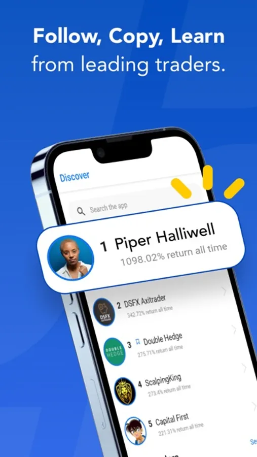 • Follow and copy trades from other users