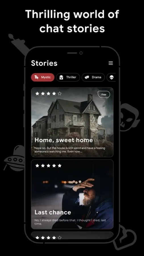 The uniqueness of chat histories consists in instantaneous immersion into the world full of dangers and fears, experiences and emotions. You become a participant in the events, experiencing the whole gamut of feelings! Unpredictable turns of the plot will not leave anyone indifferent, who at least once touches Magpie. This is a unique application that will distract you from the daily bustle, relieve fatigue and give new strength!