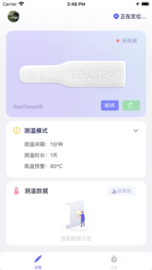 该板块是设备通过蓝牙配对、连接向App实时发送设备检测存储的温度数据。