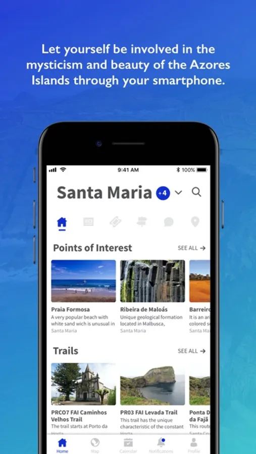 The App provides news and information about events, whether they are generalist contents, cultural, sports, recreational or other events. Events can be georeferenced, appearing on the map of points of interest and associated with the users' calendar.