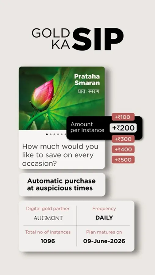 Buying gold at auspicious times is considered to bring prosperity and good fortune into our lives. Welcome SHUBH LAABH with Ausper by automatically buying gold at a muhurat of your choice.