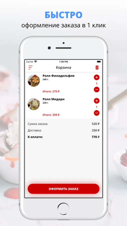 Скачивайте наше приложение, оформляйте заказ и наслаждайтесь любимой едой, где бы Вы ни были! Приятного аппетита!