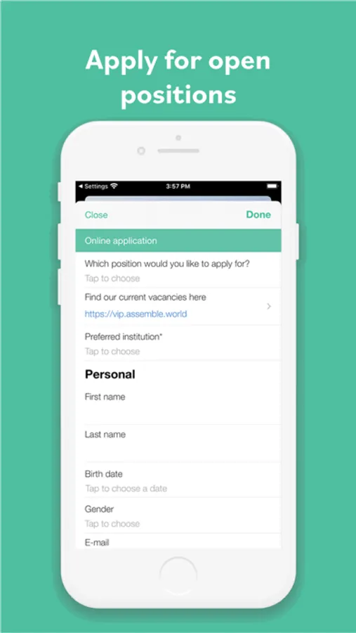 On the front page you can view open positions and apply directly for them with your information, CV and cover letter. The Murkel @work app gives you the entrance to work at Elterninitiative Murkel e.V., with communication and employment contracts directly in the app.