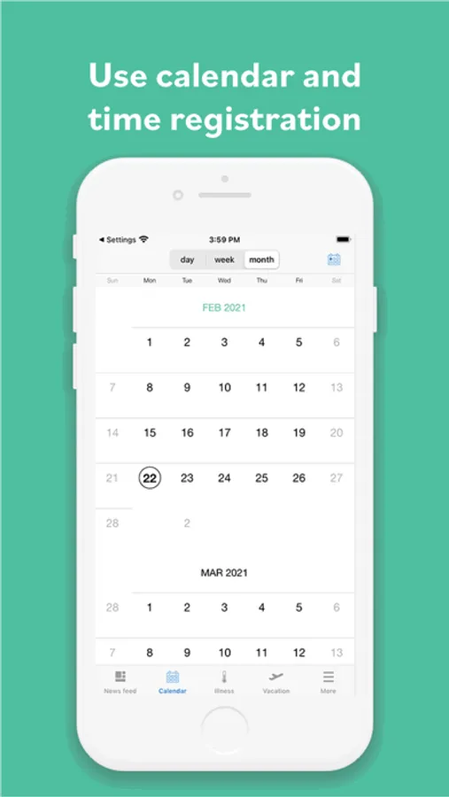 - Absence registration with vacation and sickness