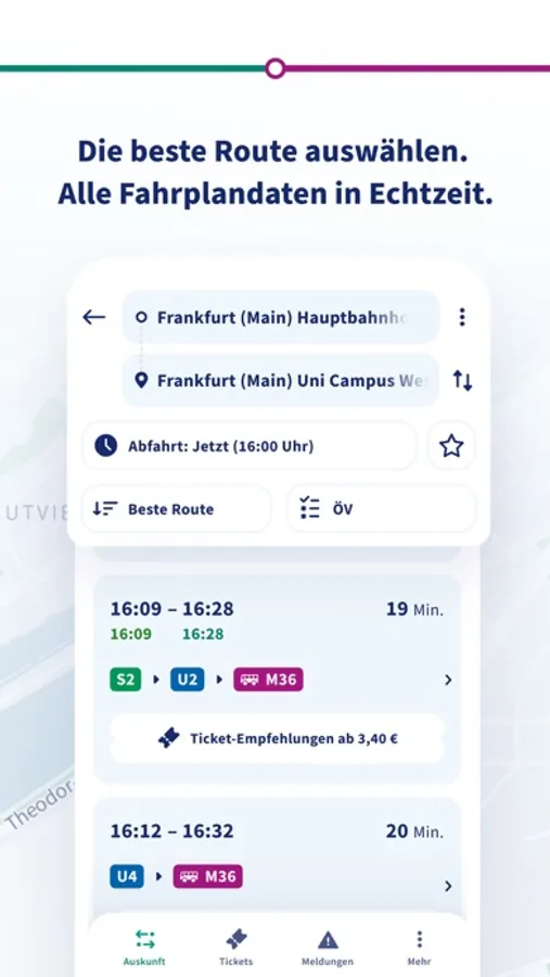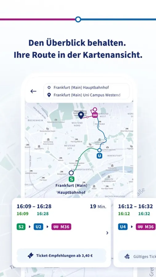 • Passendes RMV-Ticket direkt über die Ticket-Empfehlungen buchen.