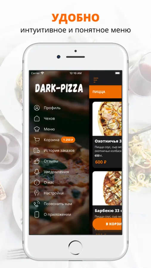 Приложение Dark-pizza — это удобный способ заказа еды домой или в офис! Мы готовим наши блюда из качественных свежих ингредиентов и доставляем еду по Чехову быстро и бережно.