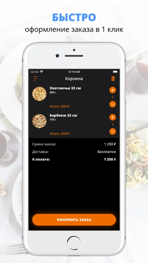 Скачивайте наше приложение, оформляйте заказ и наслаждайтесь любимой едой, где бы Вы ни были! Приятного аппетита!