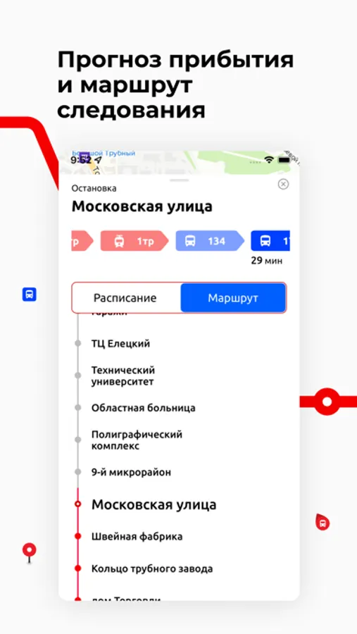 - узнать расписание и прогноз прибытия на нужную остановку;