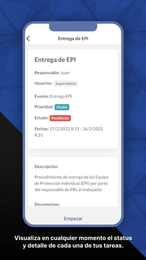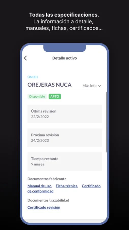Además del botón central de “escaneo”, el menú de la app posee un botón derecho de “alertas” y un botón izquierdo de “home”. Dentro de alertas accedemos a visualizar todos los últimos eventos registrados sobre el producto, tales como un cambio de estado, cambio de localización, o generación de una nueva incidencia. Dentro de “home”, accedemos a notificaciones relacionadas con el producto, que el usuario sólo recibirá en caso de que desde la ficha de producto esté asociado como “usuario responsable”.