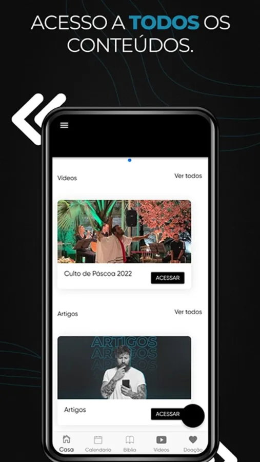- Vídeos (milagres, palavras, louvores, pregações, matérias e divulgação de eventos);