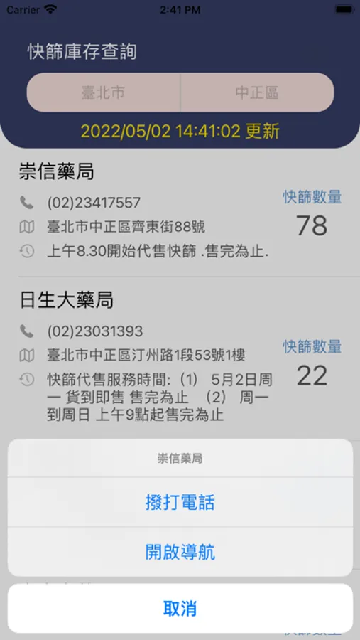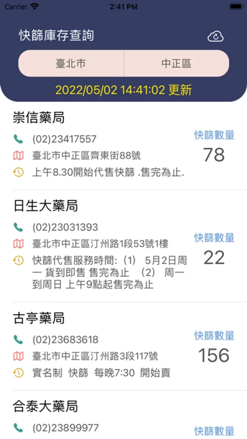 快篩數量以藥局實際存量為主,線上查詢之數量僅供參考。