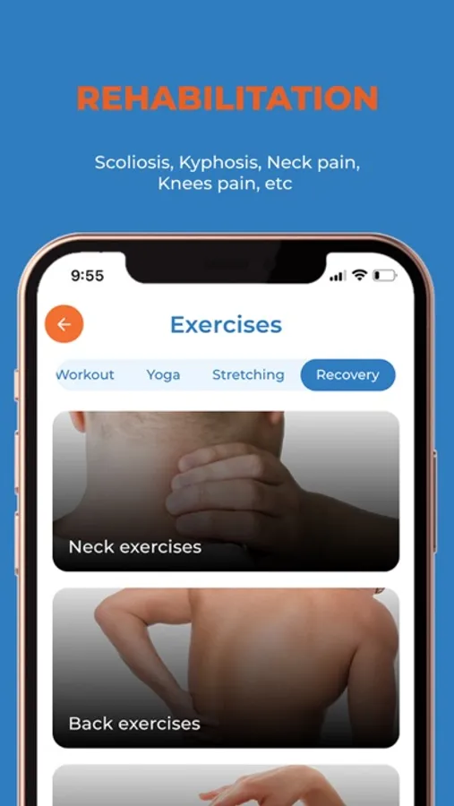 - Rehabilitation - scoliosis, kyphosis, lordosis, valgus, neck pain, knee pain, etc.