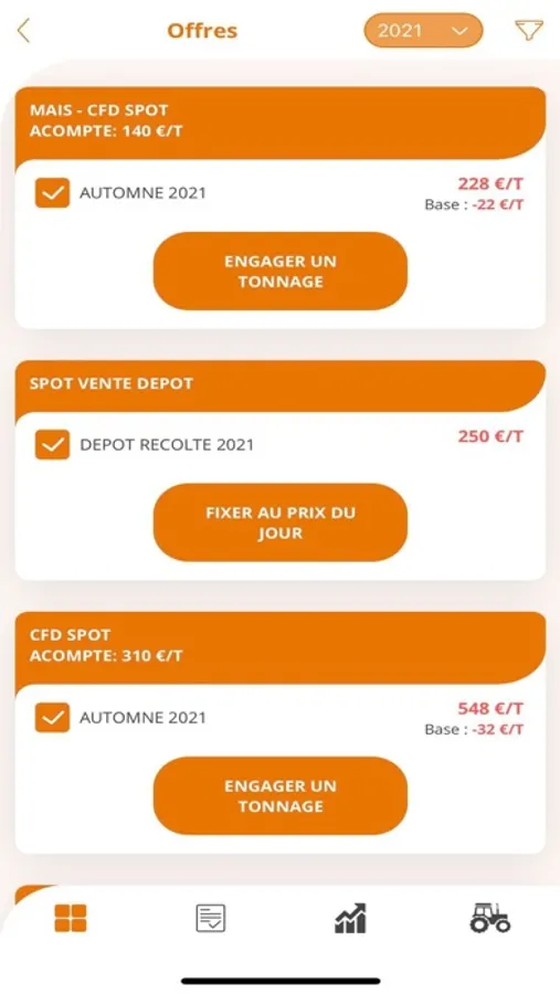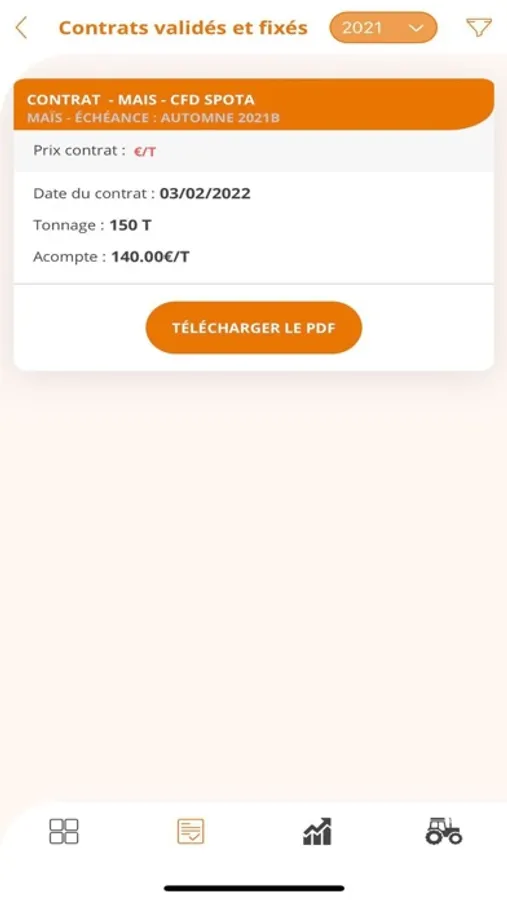 Terre Vive Le Grain, application mobile de commercialisation mise à disposition par votre coopérative Euralis. Elle permet de passer des contrats en autonomie, suivre le marché en direct, être alerté de l'atteinte de prix d'objectif etc..