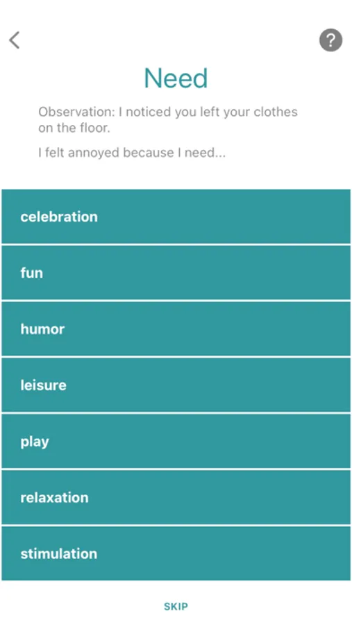 Did you know that this app can also help you write meaningful gratitudes? It be used to express gratefulness in a way that explains what underlying need was met. This app can function as a gratitude journal, keeping track of your daily met needs.