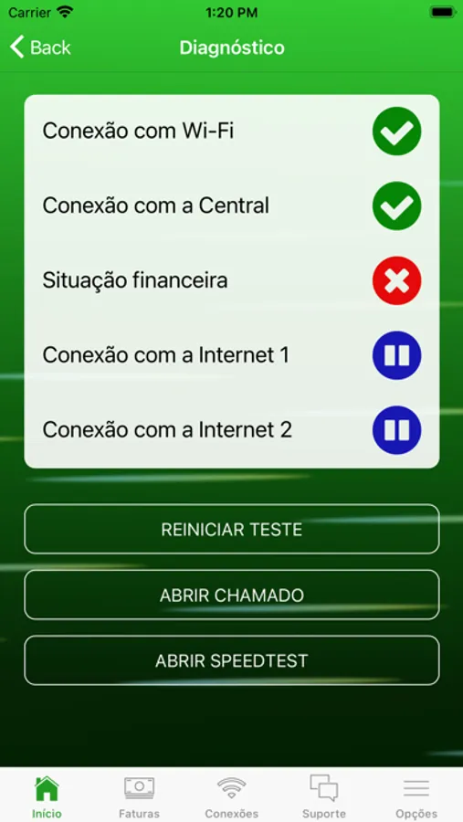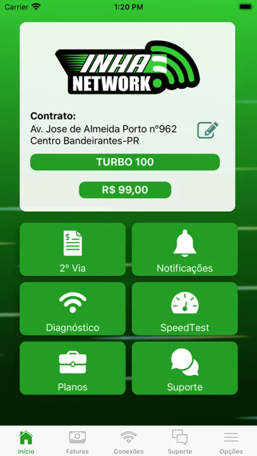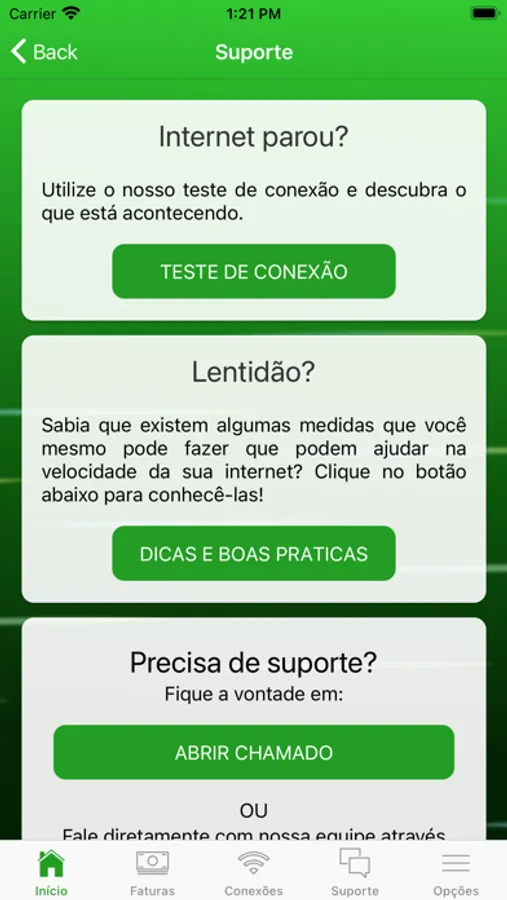 • Realização testes de conexão e velocidade;