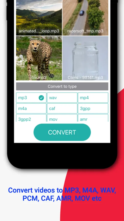 * Extract audio from video in MP3, M4A, WAV, AAC, CAF, AMR, MP4, MOV, AU, 3GPP and many more formats