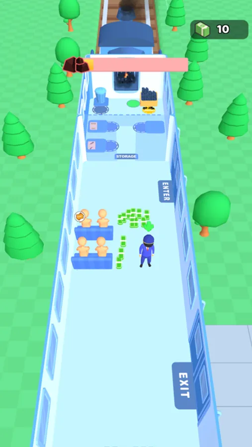 Manage the train. Put coal on the train, collect the money for meals and tickets for the passengers