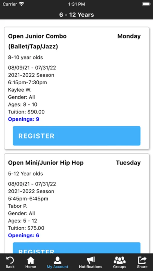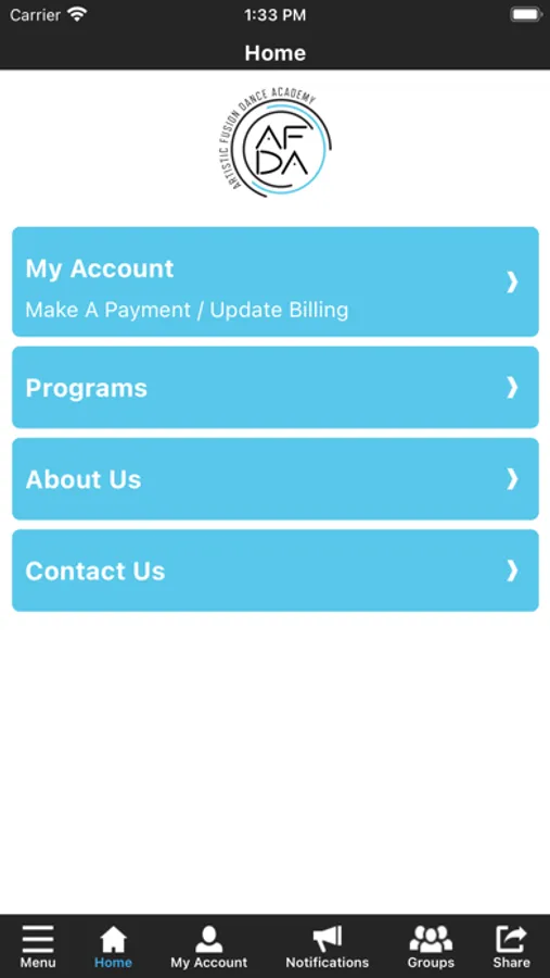 The AFDA app allows you to manage your account with ease, register for classes, parties, and special events. You'll also receive important notifications about class changes, closings, registration openings, special announcements, and upcoming events.
