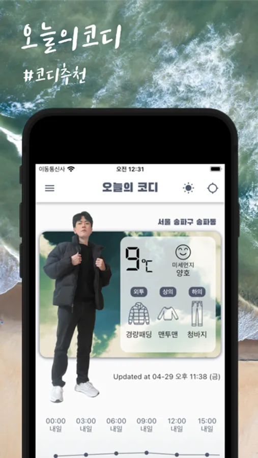 최저 기온, 최고 기온을 판단하여 가장 적절한 옷을 코디하세요.