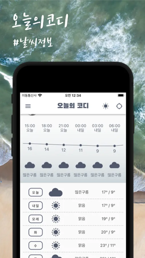 오늘의 날씨와 기온, 미세먼지 정보까지 제공하는 최고의 어플입니다.