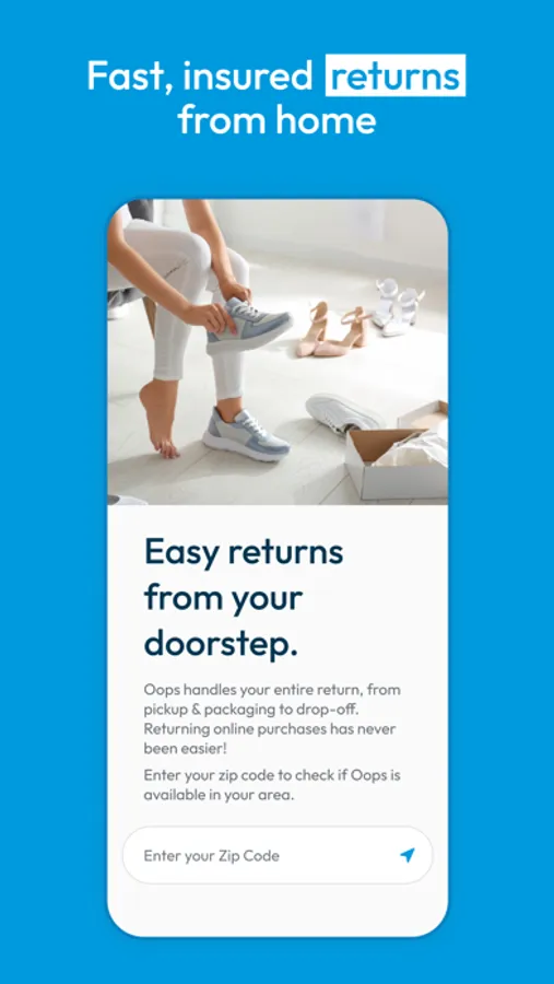 Oops makes returning stuff so easy, you don’t leave home! Let Oops handle your return and save time, effort, and money. Oops picks up items from your doorstep, packages, insures, and drops-off your return. No printing, packaging, or driving. No more missing return windows and getting stuck with things that you don’t want! Just stupid easy returns.