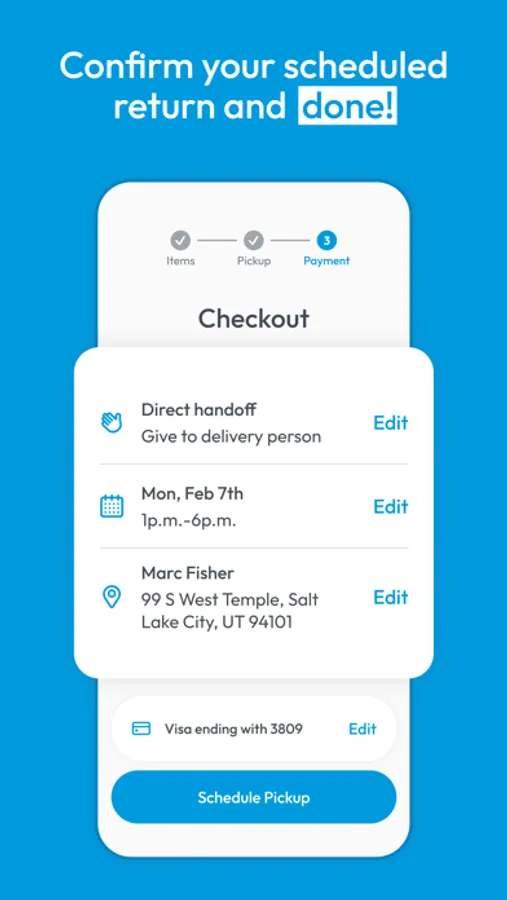 - Choose your pickup method: Doorstep or Direct Hand-off