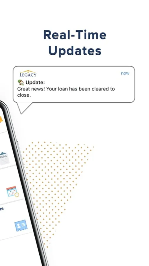 The Legacy Mortgage Partners mobile app allows consumers, real estate agents, and loan officers the ability to track their loans, receive real-time updates, and submit conditions via their mobile devices. Users are able to verify loan information and status, receive push notification reminders for important dates (appraisal, loan commitment, closing, rate lock, etc.), initiate a chat, and remain engaged from origination to close.