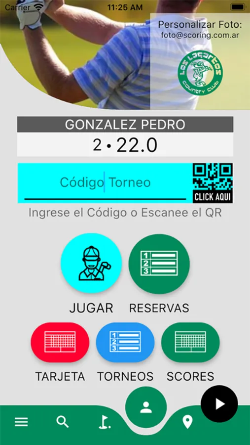 Ambas opciones acceden al menu Agregar Jugador, donde ingresara la matricula de su compañero de juego y seleccionara el tee de salida de cada uno.