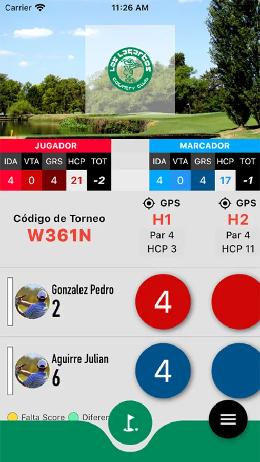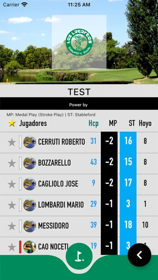 Vista completa de la Tarjeta de juego haciendo click en el nombre de cada jugador. Ahi encontrara todos los golpes y los detalles de los hoyos (como el Par, Handicap, etc).