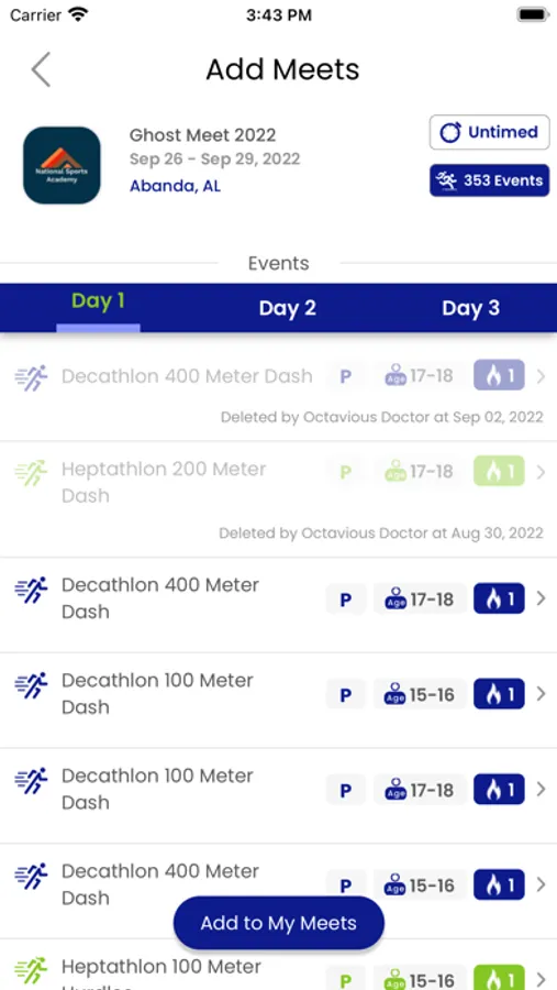 The GoTimeSports Track Meet App saves time and improves communication between Meet Directors, Coaches, Athletes and Spectators by providing the following features :