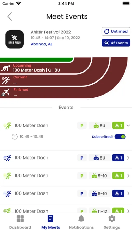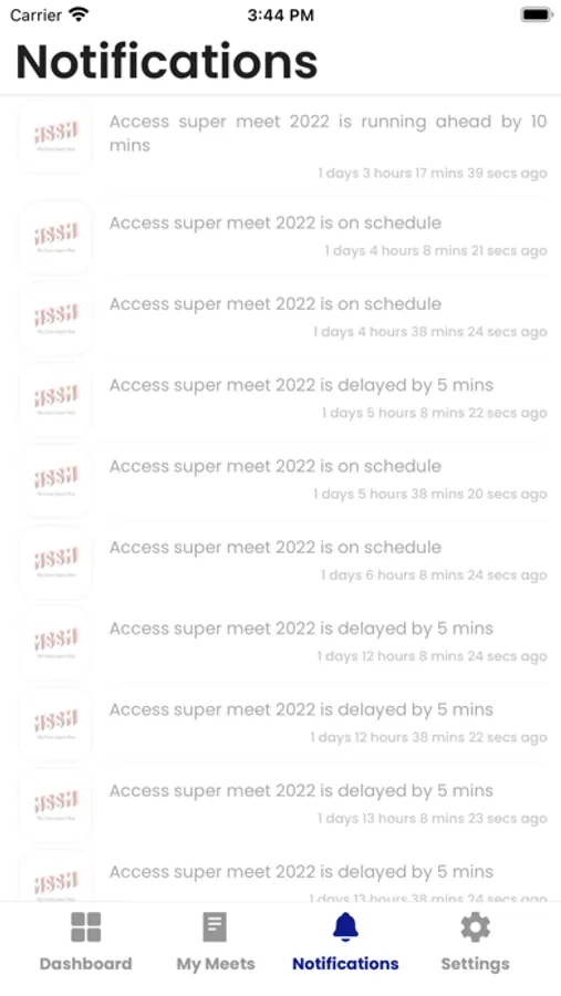 - Receive Schedule Changes "Real-Time" During Meets (Delays, Event Changes, etc.)