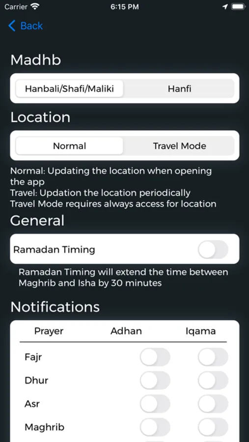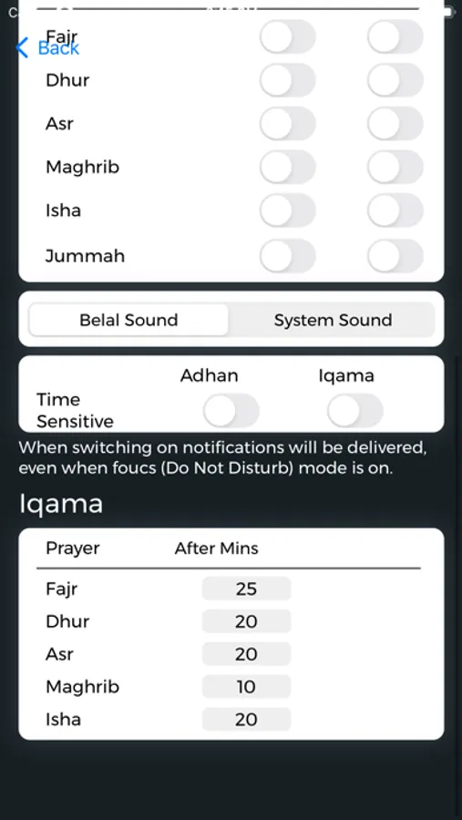 - Time Sensitive Notifications to remind you of Prayer Time even when Do Not Disturb mode is activated (This feature can be switch on/off as needed)