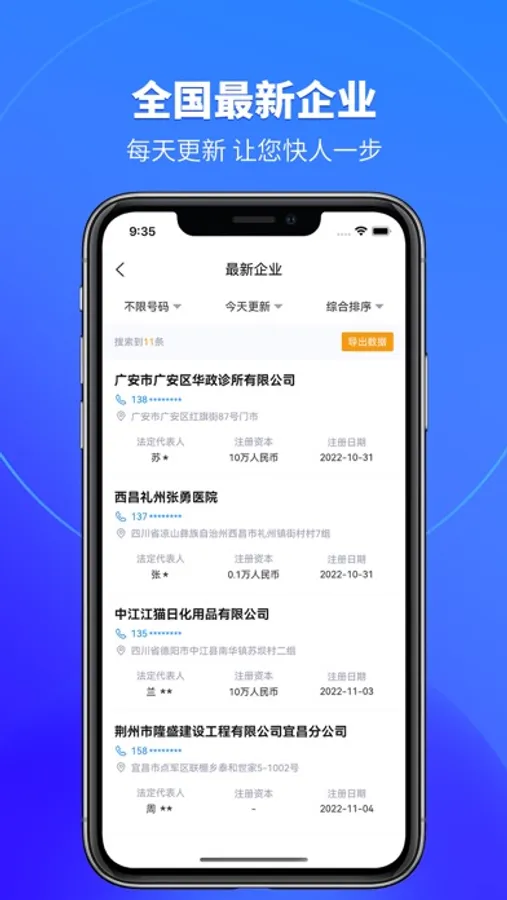 专注于提供全国各行业的客源信息的挖掘,帮助各行业的老板、批发商、经销商、渠道商、销售人员提供真实、精准、有价值的客源信息是我们的宗旨。数据来自于互联网公开渠道,可帮您节省查找时间,可以帮助销售人员快速找到目标企业负责人,助您有效拓客。