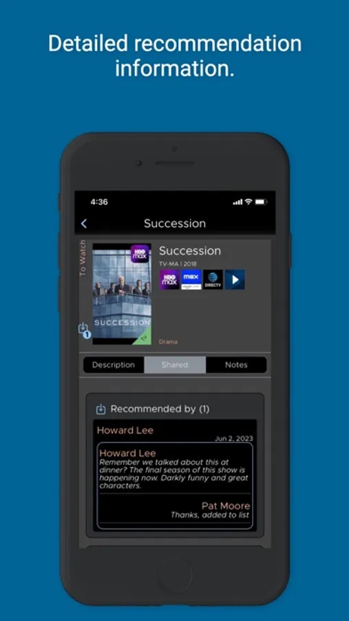 And when friends send you their latest picks, you’ll have a list waiting for you when you're ready for your next book, movie, TV show, or podcast.