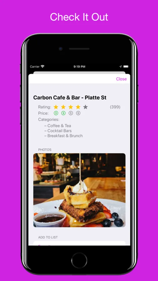 * When you’re out, see restaurants nearby and swipe until you find your perfect match