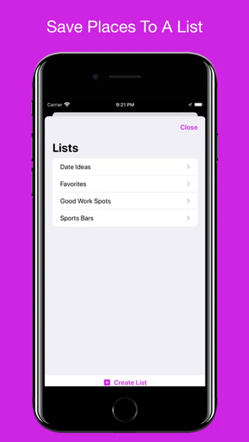 * Create custom lists to save places for later