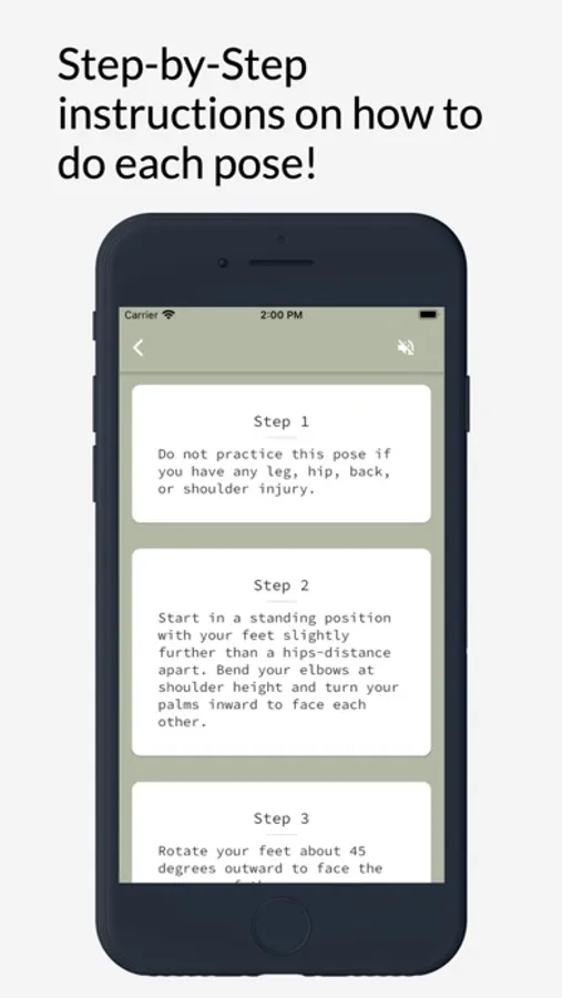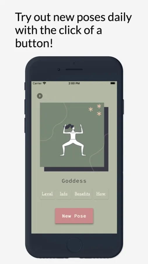 With the click of a button Yogi Glow randomly selects a new pose for you to work on. You will learn what level each pose is, the benefits, and step-by-step instructions on how to do each pose. There is also the ability to select a hands-free option on the instructions and Yogi Glow will read out each instruction to you while you practice the pose!