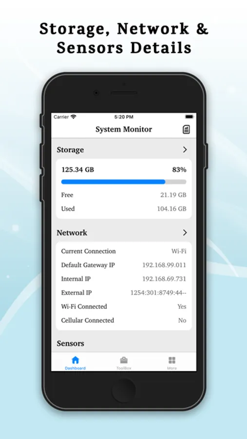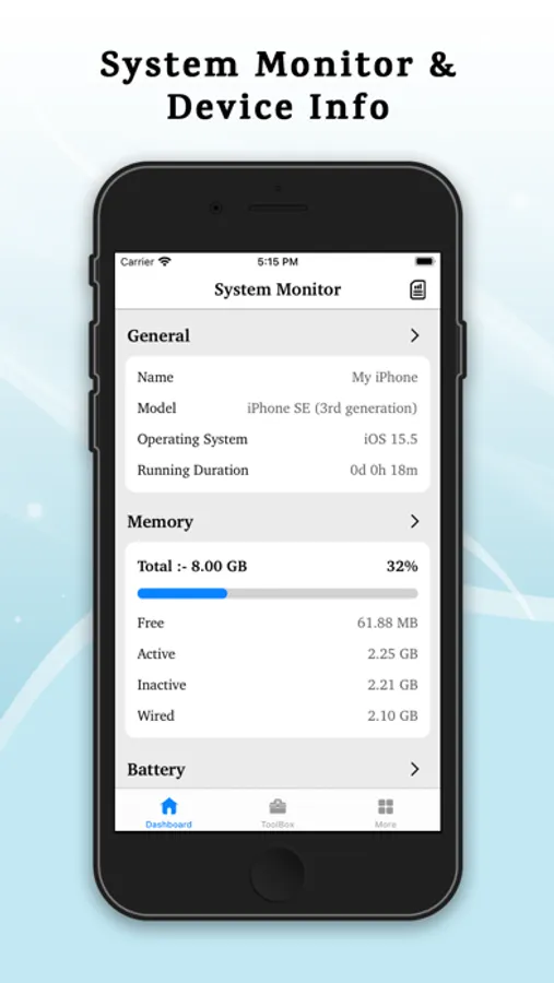 This app helps you to get information about device hardware, operating system, network interface, storage information and battery information.