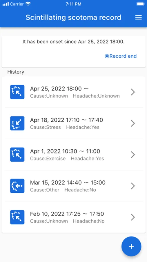 You can keep a record specifically for the symptoms of the Scintillating scotoma.