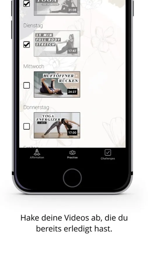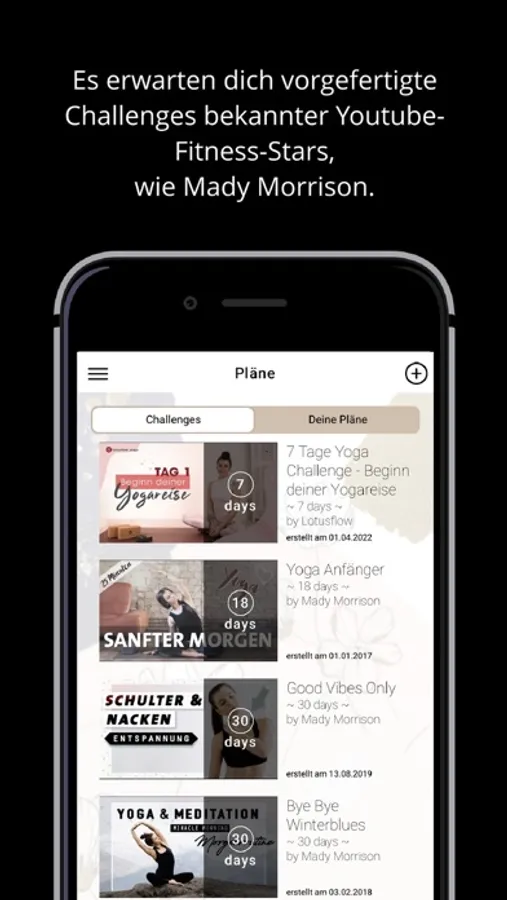 - wähle aus hinterlegten Yoga Challenges aus, z.B. von Mady Morrison