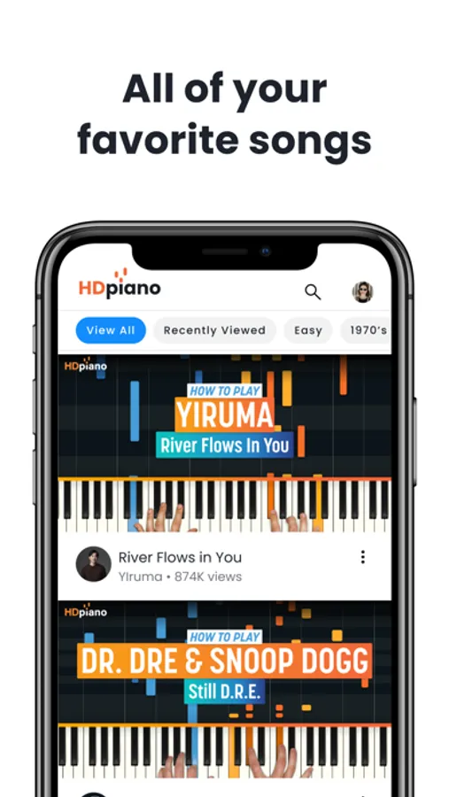 - Subscribe to HDpiano+ to access all lessons, for all songs! (In-App Purchase available)
