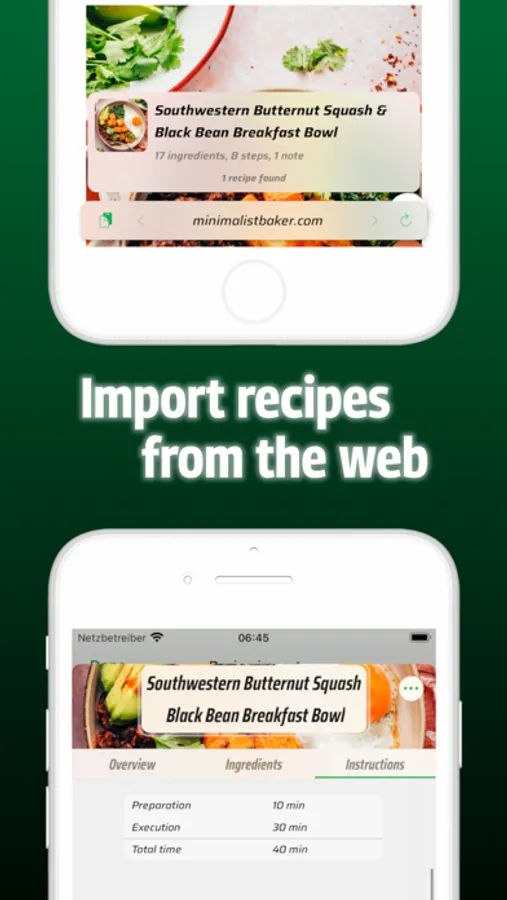 • Smart import: Taste automatically detects and imports ingredients, preparation steps, and cooking times