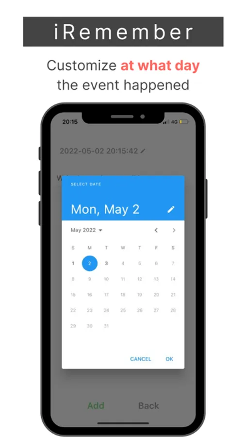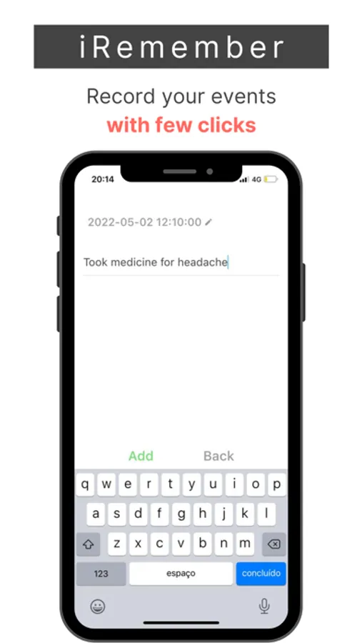 With iRemember App you have the perfect tool to record any event including its exact day and time.