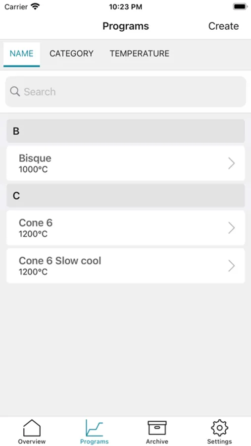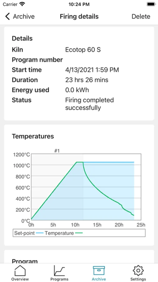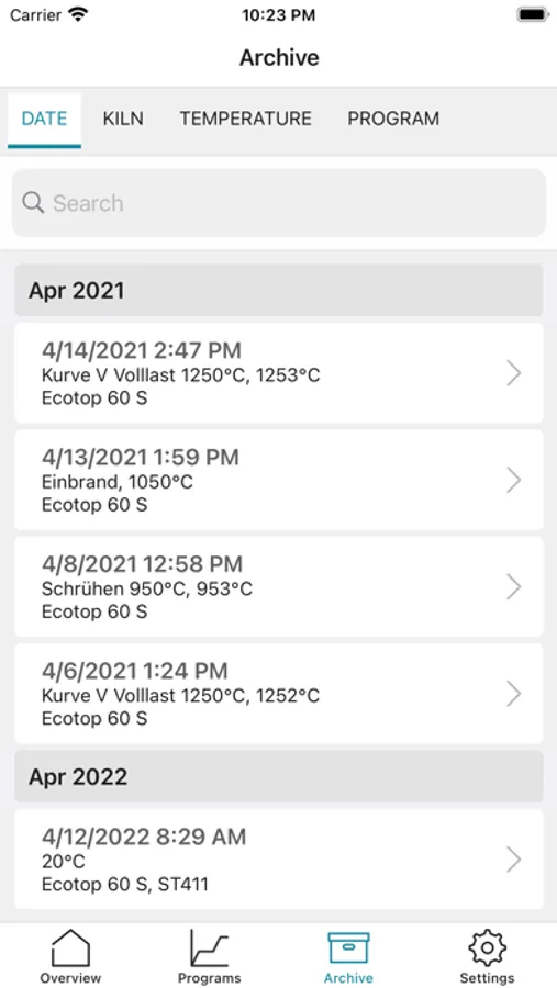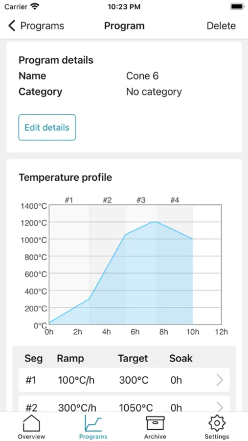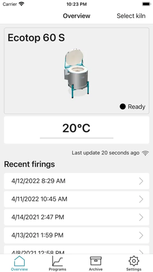 Each firing is automatically stored in the myKiln app and can be accompanied by pictures of your results or comments. This way you can keep track of your past firing curves.
