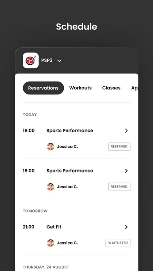 For members of PSP3 to reserve their place in a class, sign up for gym events, and general account management like updating headshots and credit card on file.