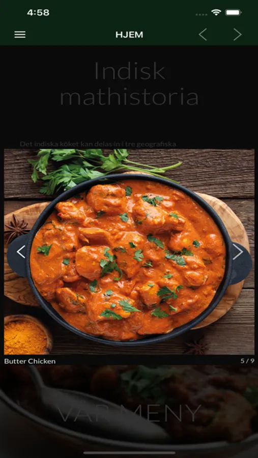 Det indiska köket kan delas in i tre geografiska underavdelningar; nordindiskt (punjabi, kashmir, benaras, mughlai med flera), sydindiskt (Andhra, Mysore, maharashtriskt med flera) och östindiskt (bengali-assamese).
