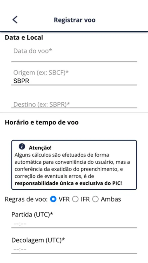 - Cálculos automáticos de tempos de voo diurno, noturno , VFR e IFR.