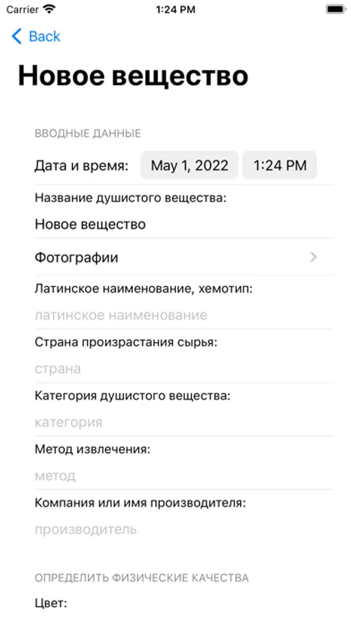 -В приложении есть все необходимые параметры для оценки физико-химических свойств: (цвет, прозрачность, вязкость, волатильность, целостность и другие)