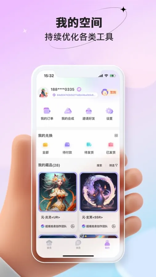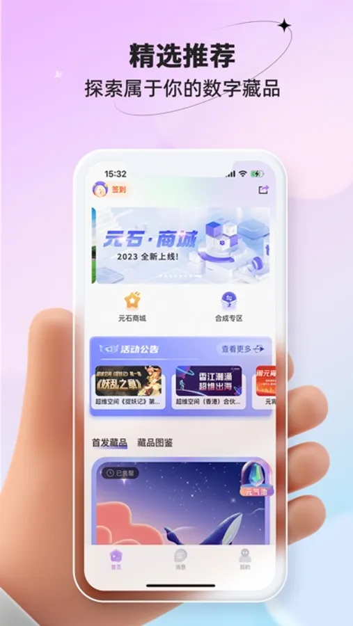 藏品玩法:成为数字收藏家,不仅可以观赏藏品、享受收藏的美好体验,还可以与好友分享收藏见解和快乐。色彩之舞、超维殿堂、生态之界三款元宇宙数藏品展厅可供多元选择。