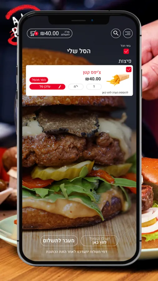 המסעדה מציעה מבחר ענק של המבורגרים ותוספות להמבורגרים.